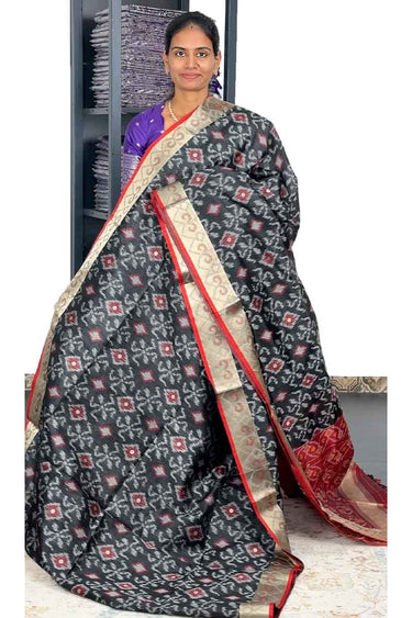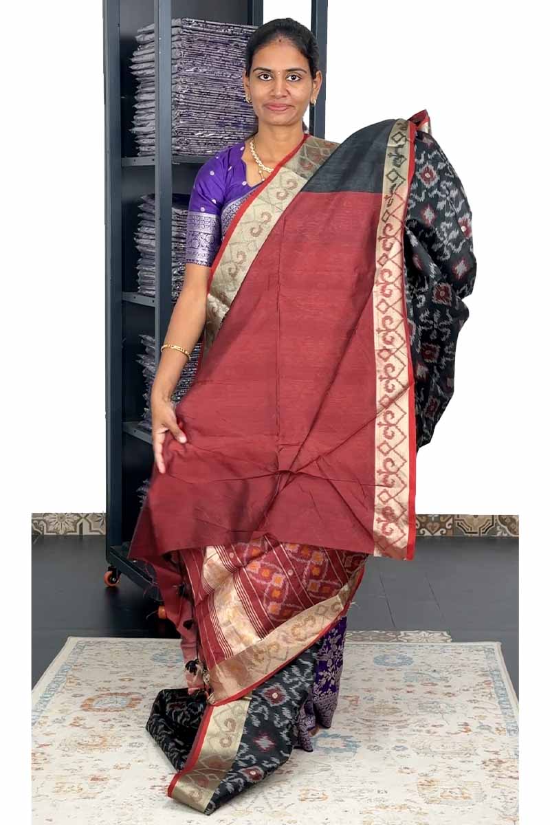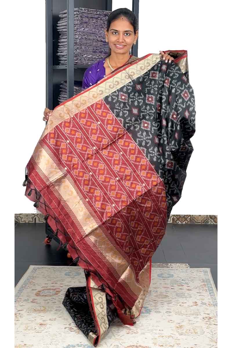 Patola Silk Saree With IKkat weaving | Black + Maroon