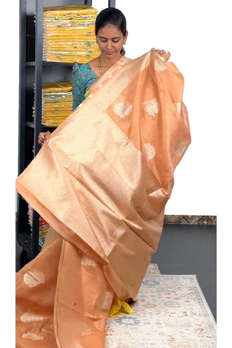 Tissue Crushed Saree With Zari Weaving | Peach Orange