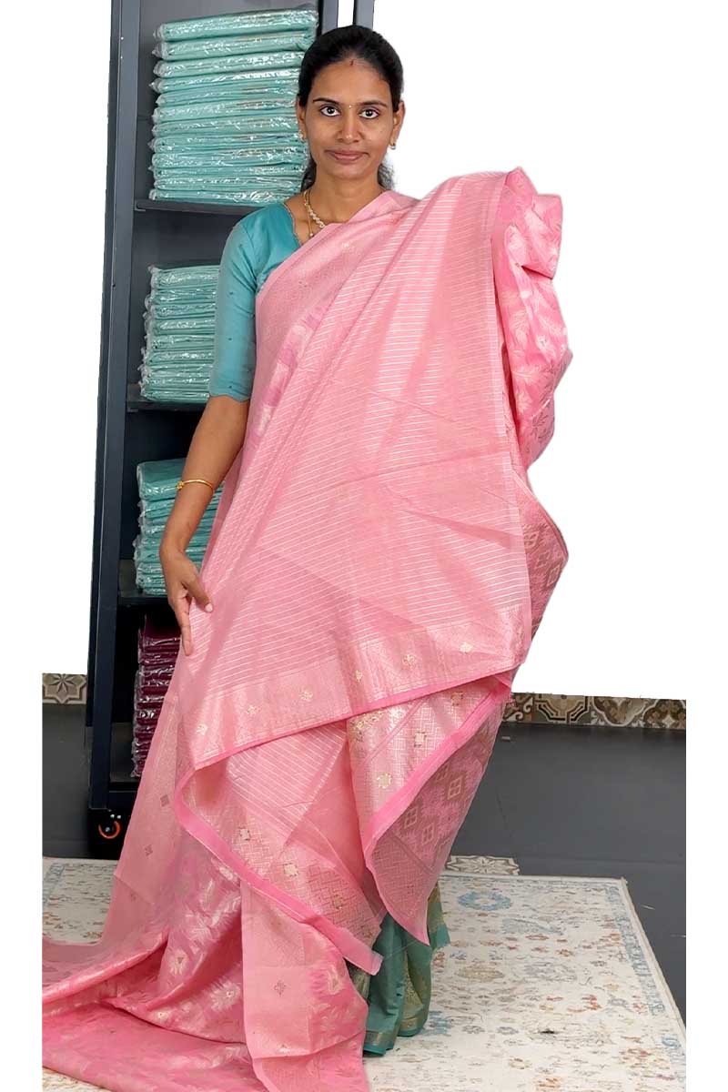 Banarasi Linen | Zari Weaving | Watermelon pink