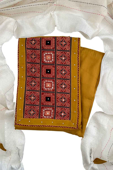 Unstitched Salwar Set - Viscose Cotton | Dark Mustard + White