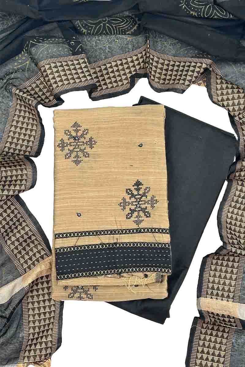 Unstitched Salwar Set - Handloom Cotton | Sand + Black