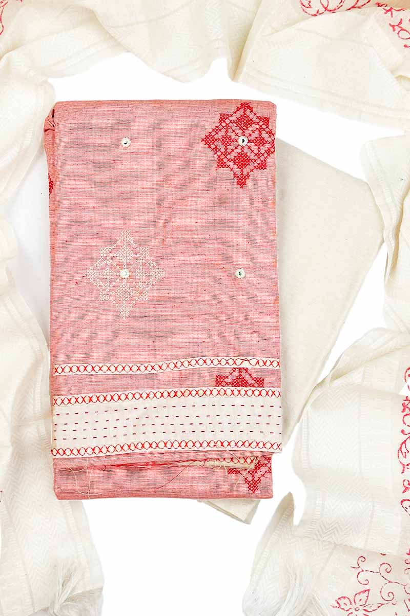 Unstitched Salwar Set - Handloom Cotton | Mamey Pink + Half White
