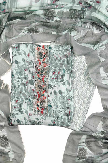 Here is our Ice Blue colour unstitched dress material, which has an ideal fresh look.