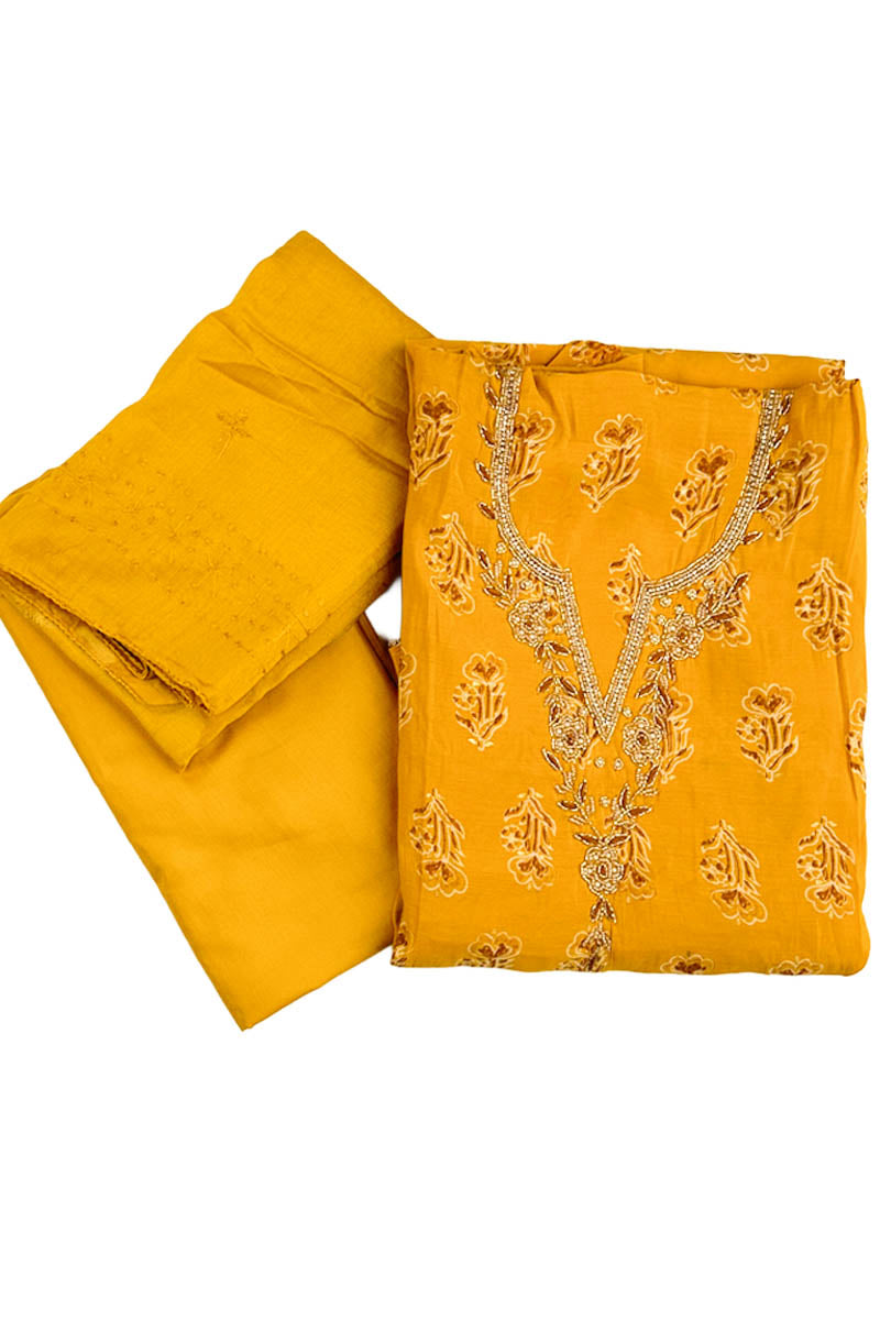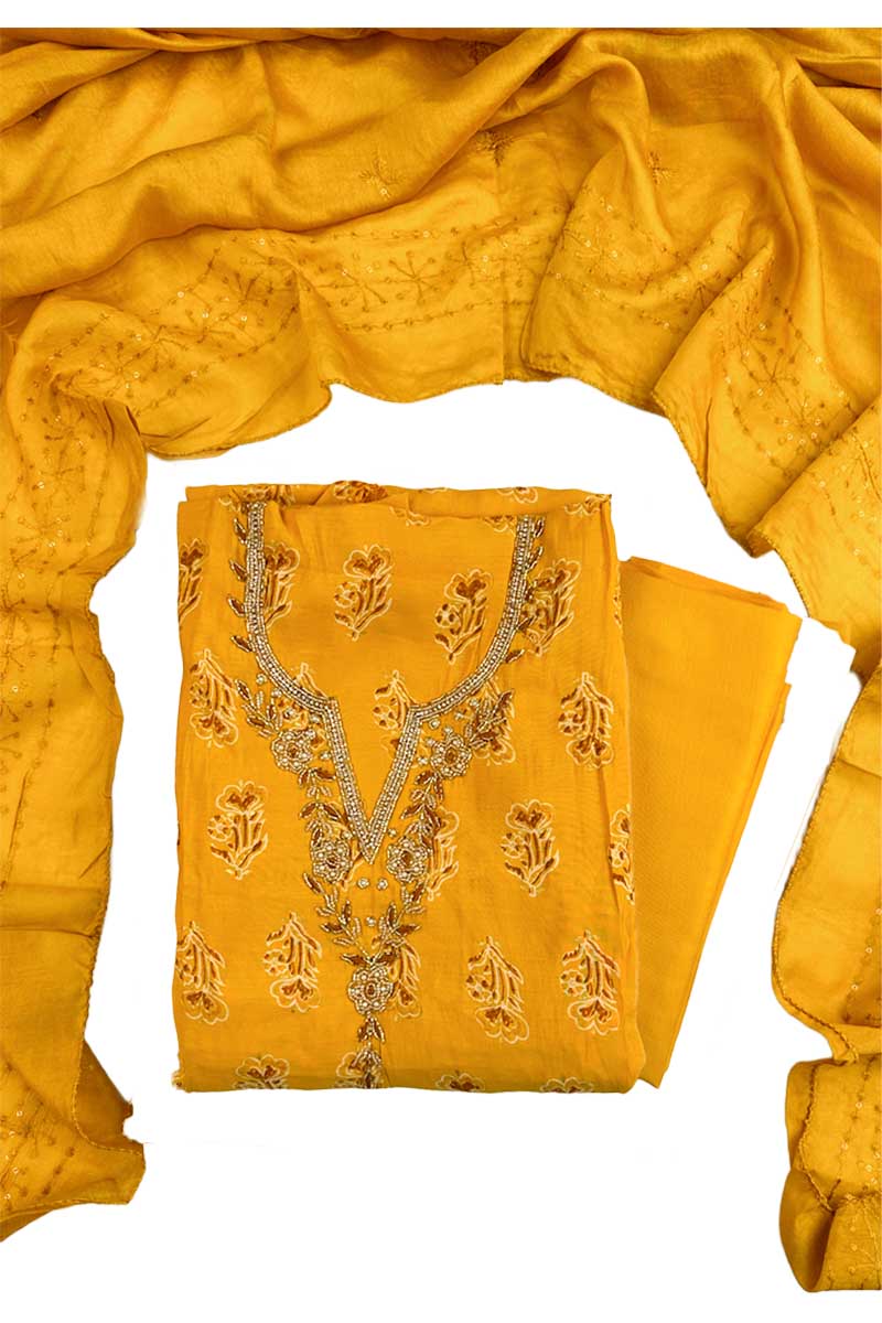 Unstitched Salwar Set -Muslin Silk| Ari Work Embroidery Design | Golden Yellow