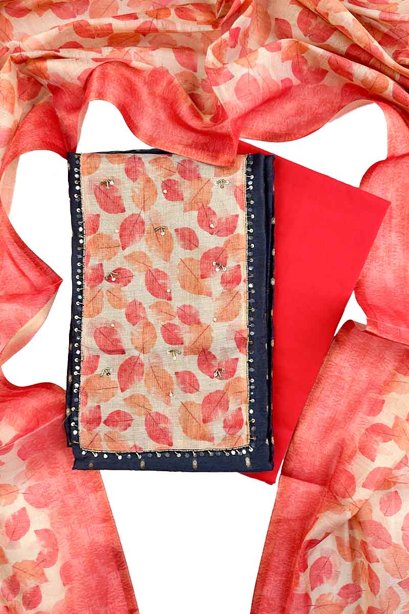 Here is our Blue Grey + Watermelon Pink colour unstitched dress material, which has an ideal fresh look.
