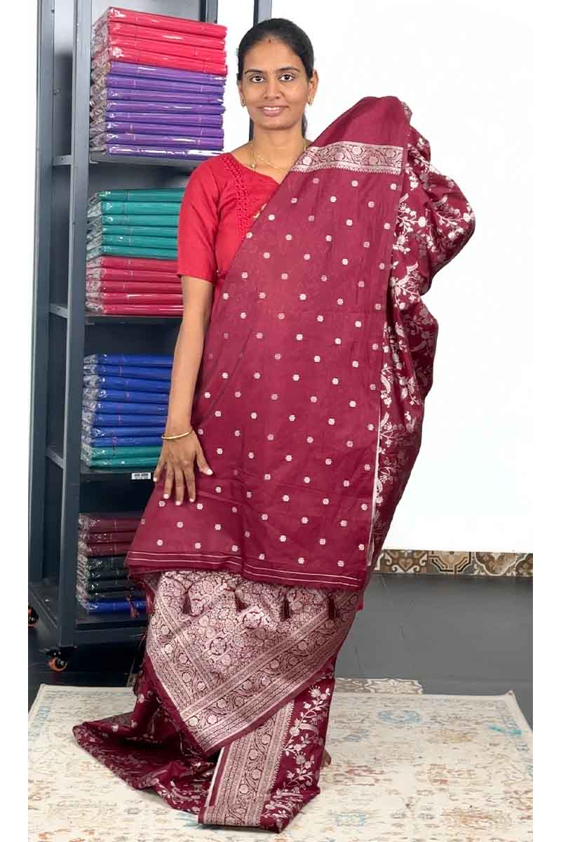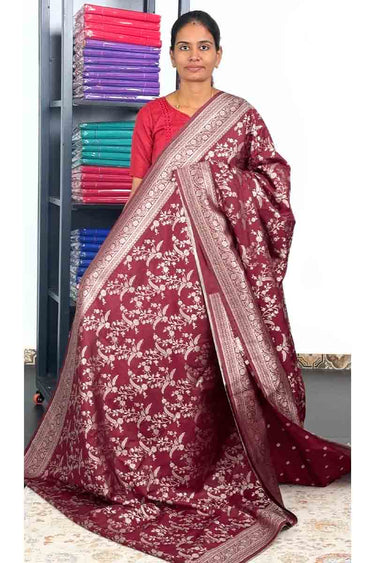 Banarasi Silk Saree With Silver zari | Dark Maroon