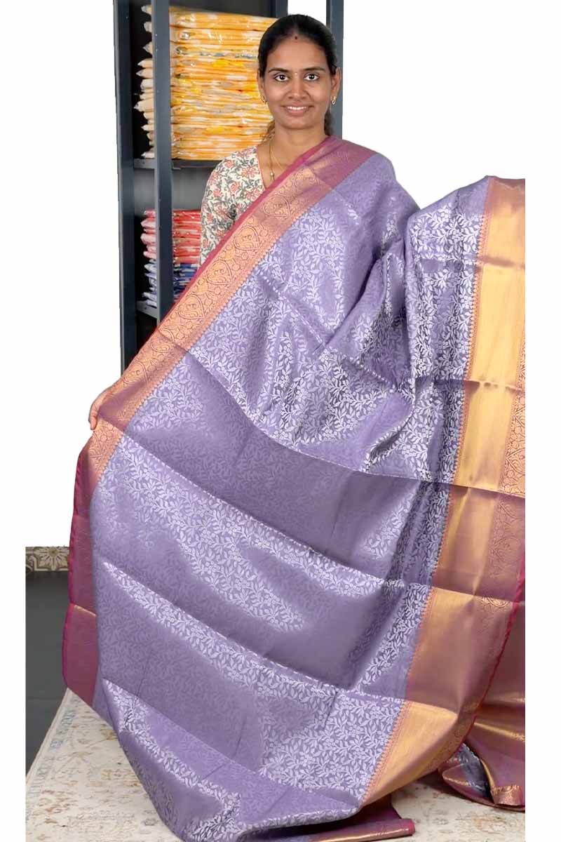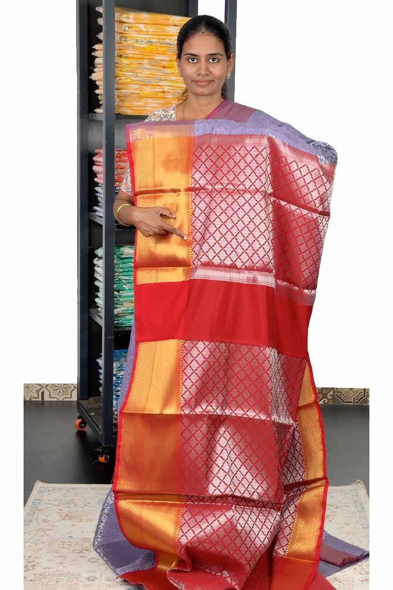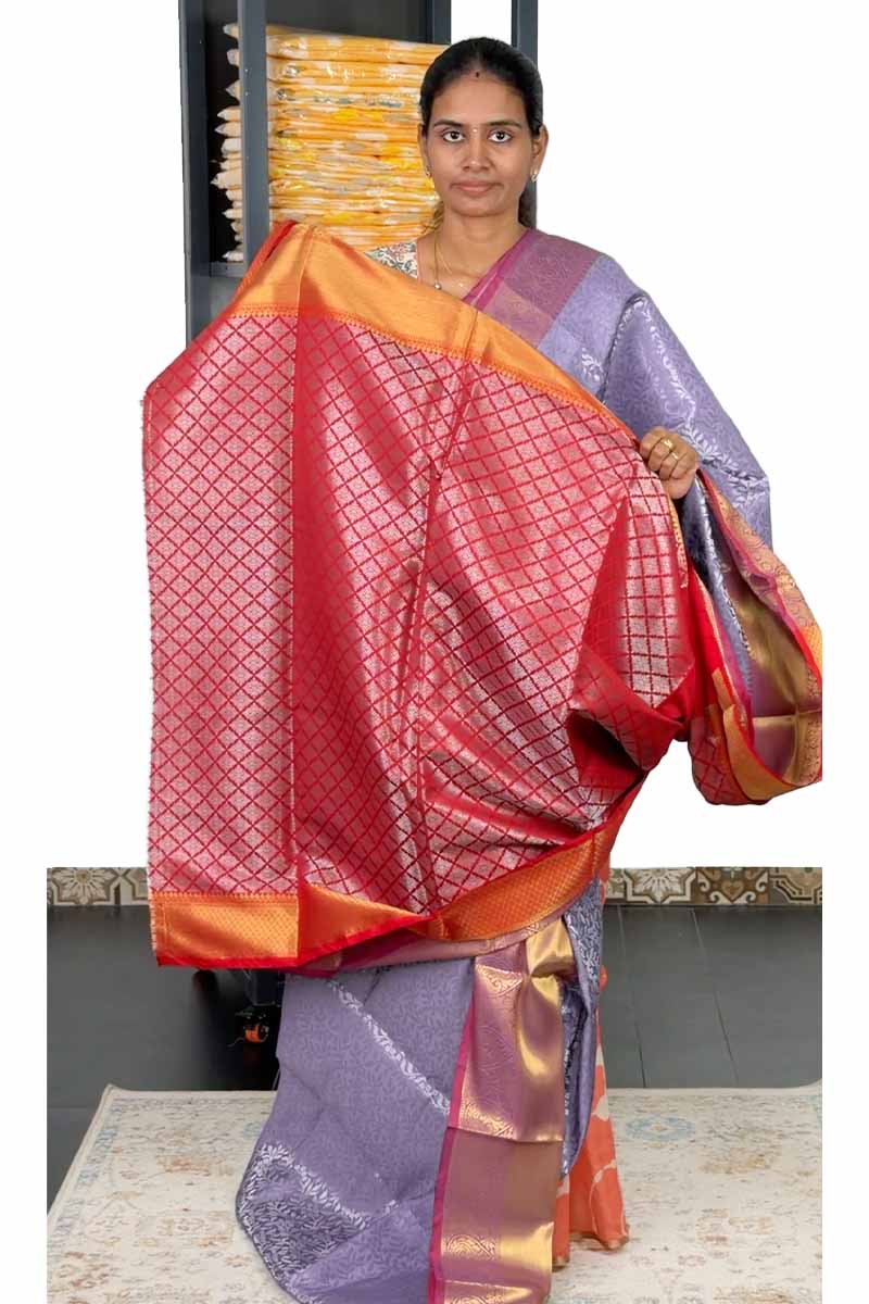 Banarasi Kataan Silk Saree With Brocade Work | Lilac + Pretty Red