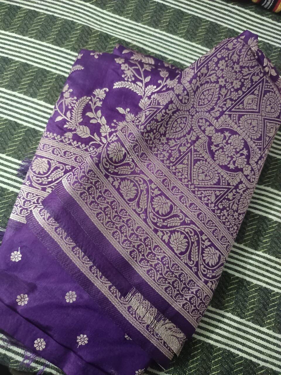Banarasi Silk Saree With Silver zari | Mulberry Purple
