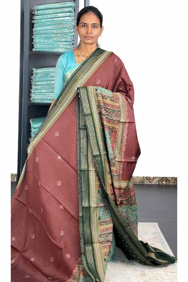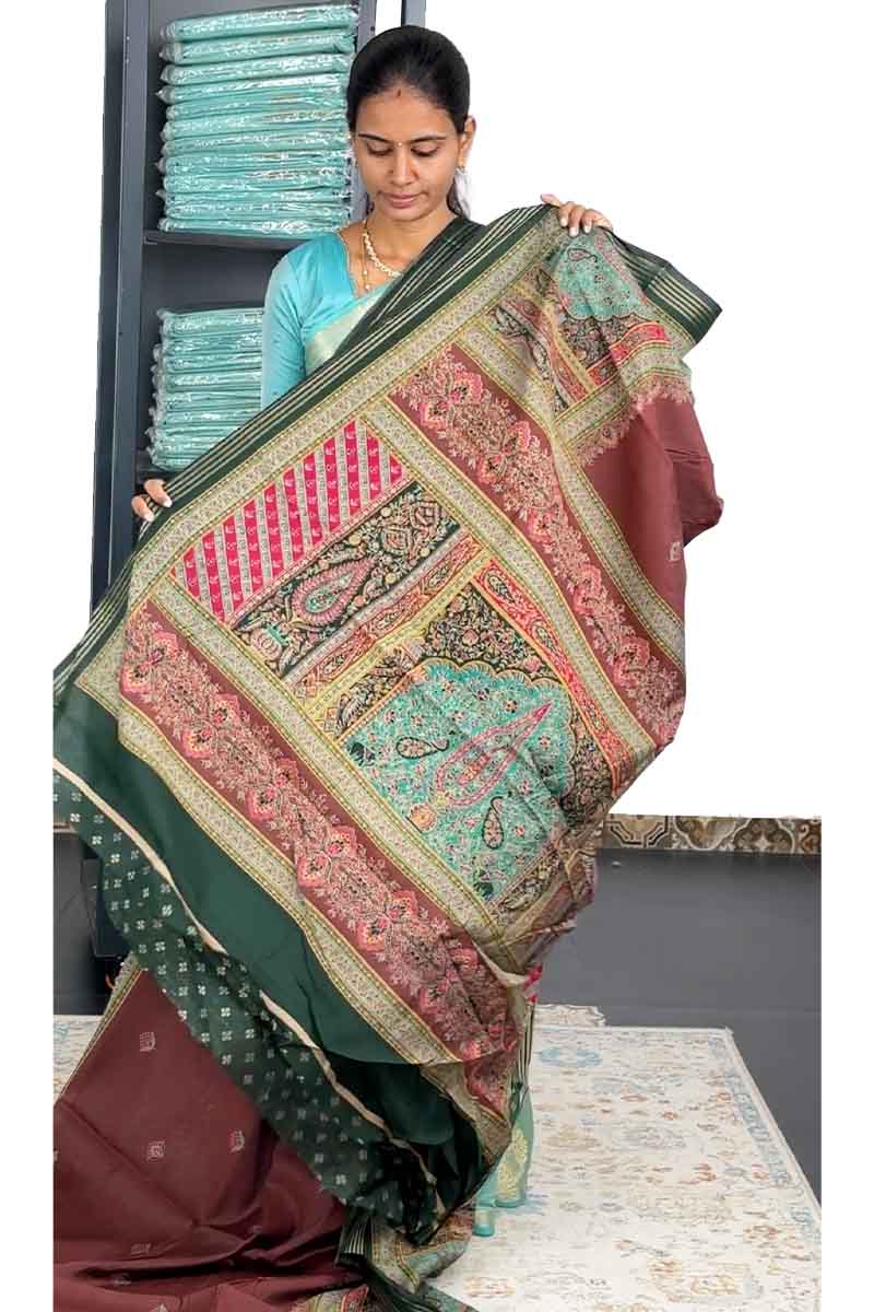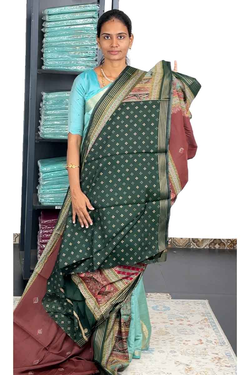 Maheswari Cotton with zigzag Pattern | Coffee Brown + Forest Green