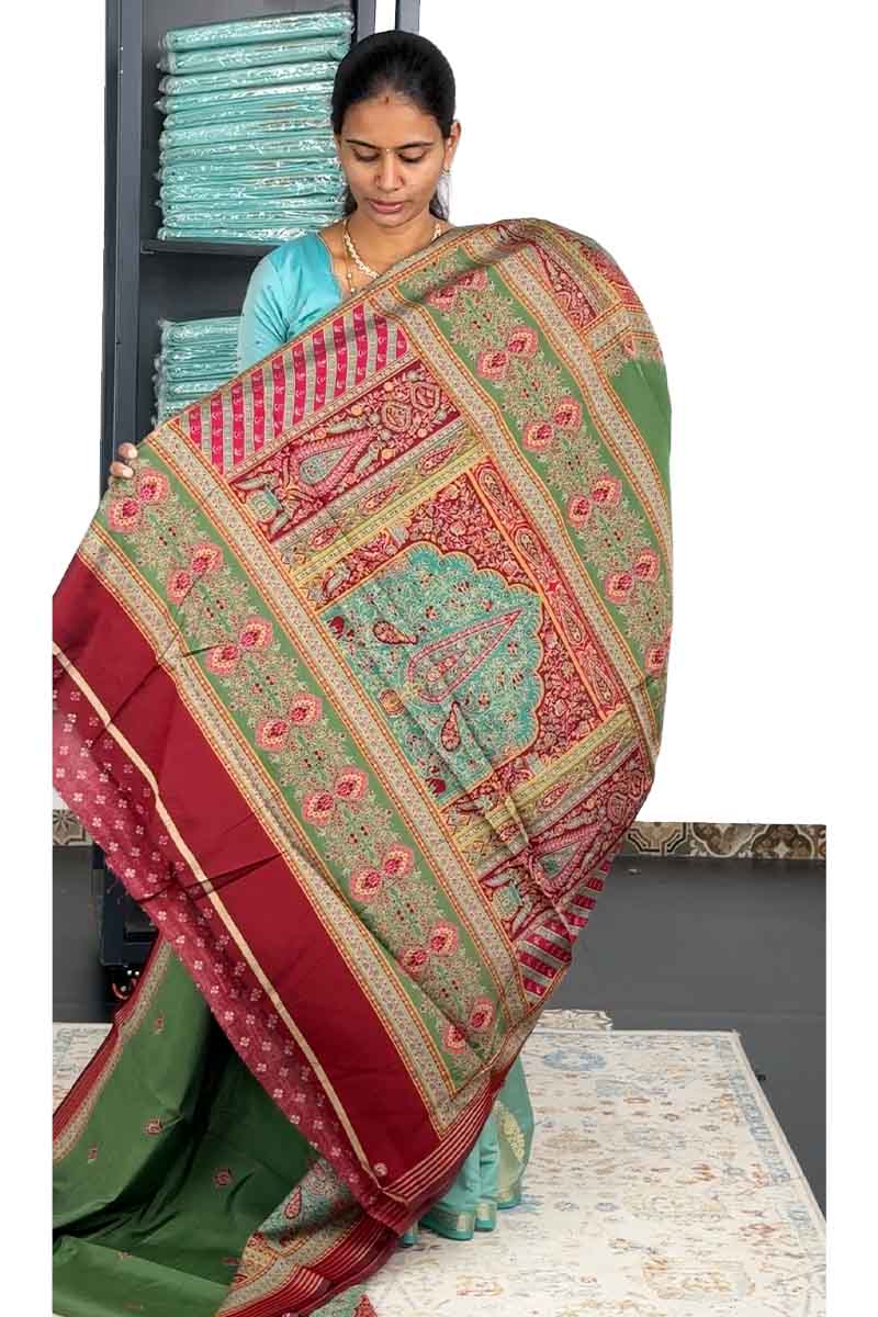Maheswari Cotton with zigzag Pattern | Emerald Green + Burgundy