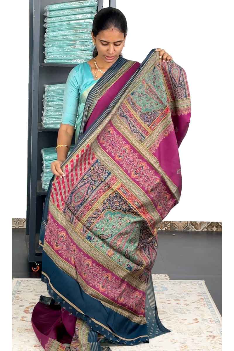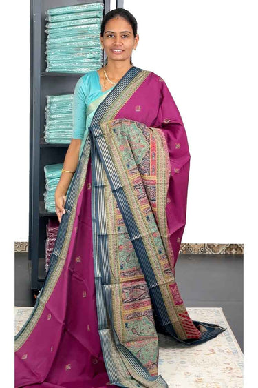 Maheswari Cotton with zigzag Pattern | Jamun Pink + Navy Blue