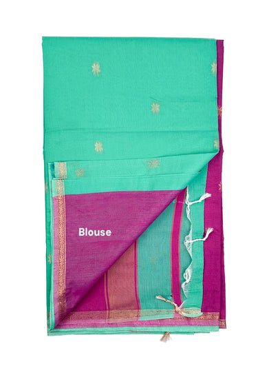 Maheswari Cotton with Small Butta | Mint Green + Deep Pink