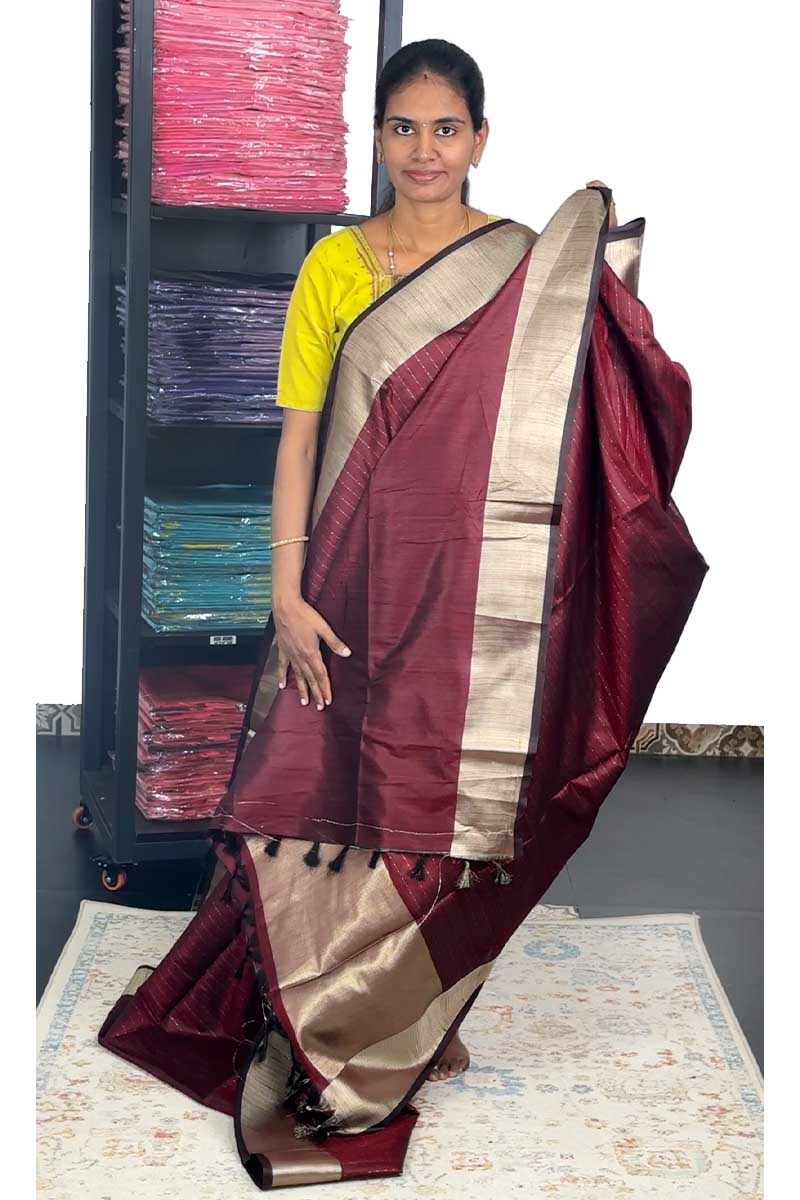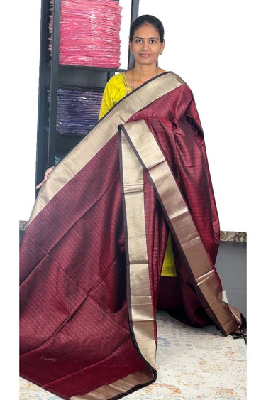 Raw Tussar Saree With Stripes Pattern| Maroon