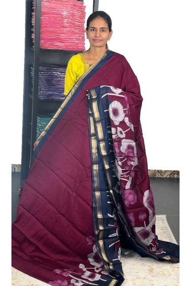 Semi Maheswari Cotton with Pichwai Design | Maroon and Navy blue