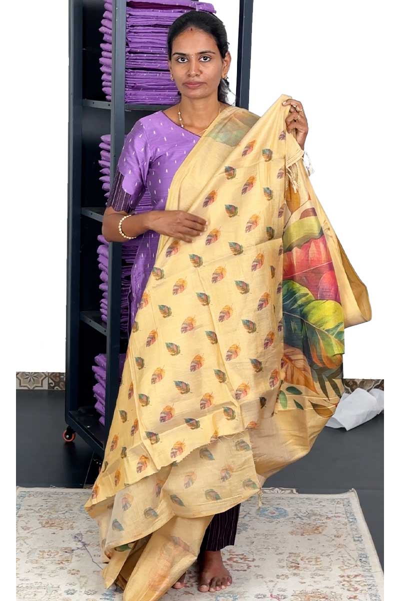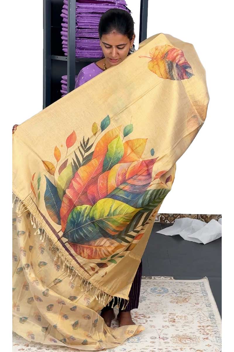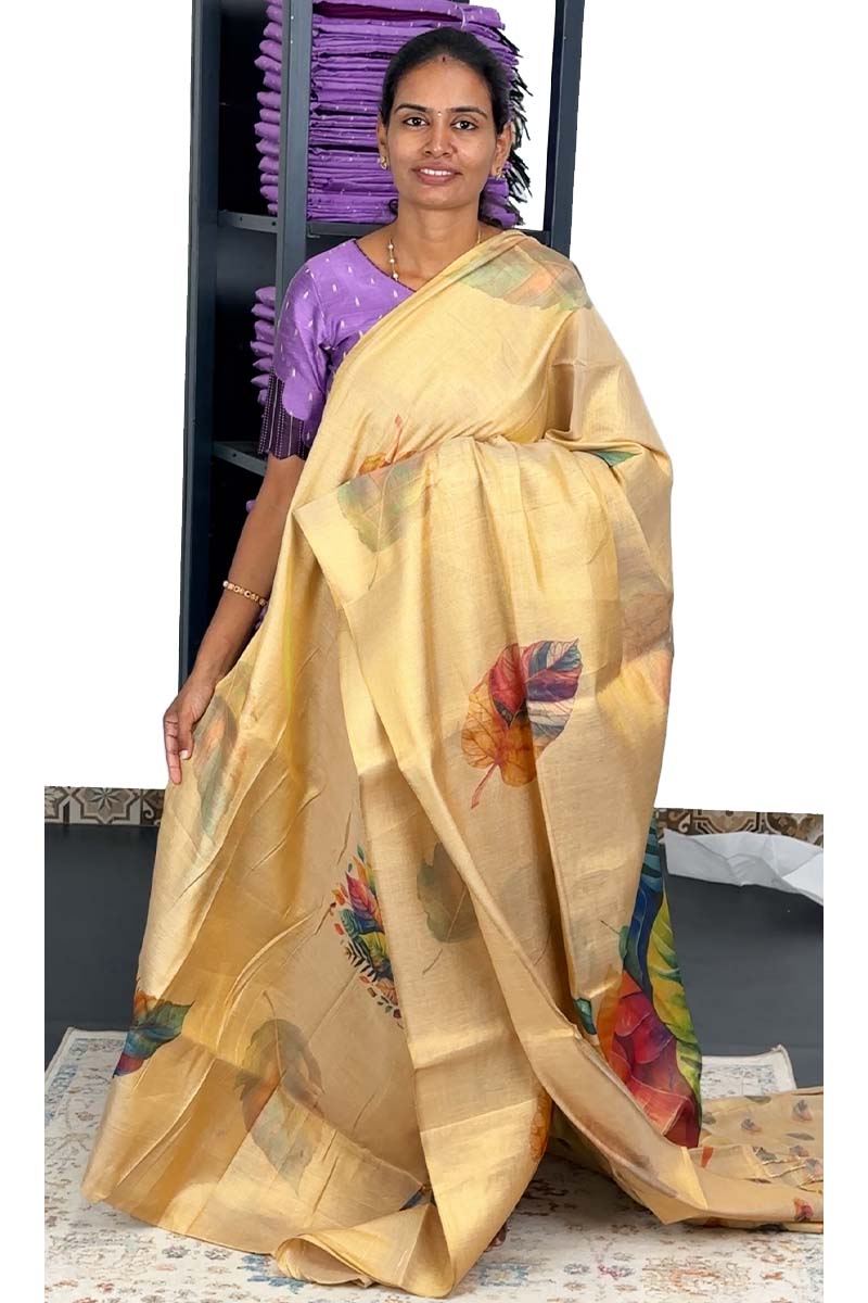 Tissue Linen Sarees with digital prints | Tussar Colour