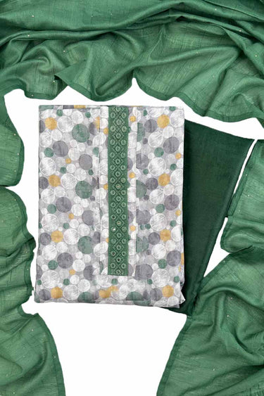 Here is our forest green colour unstitched dress material, which has an ideal fresh look.