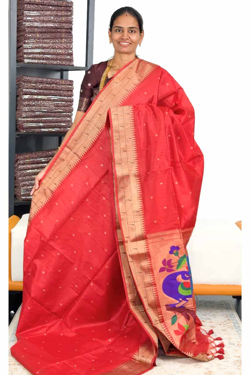 🌟 Semi Raw Silk Saree With Paithani Design| Pretty Red