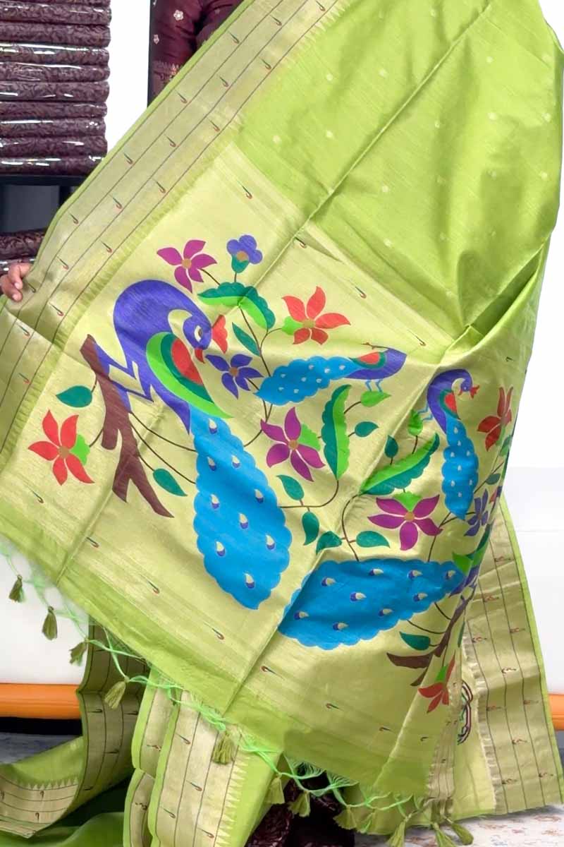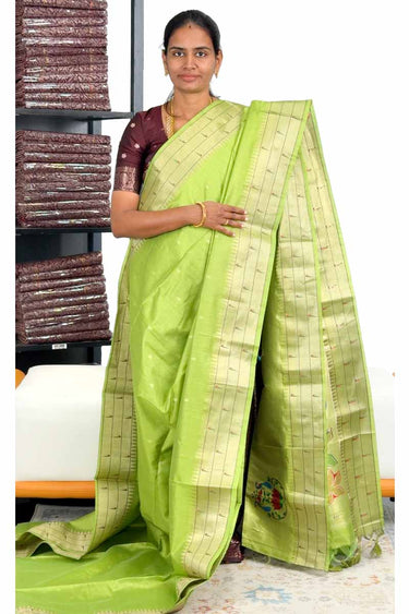 🌟 Semi Raw Silk Saree With Paithani Design| Fresh Green