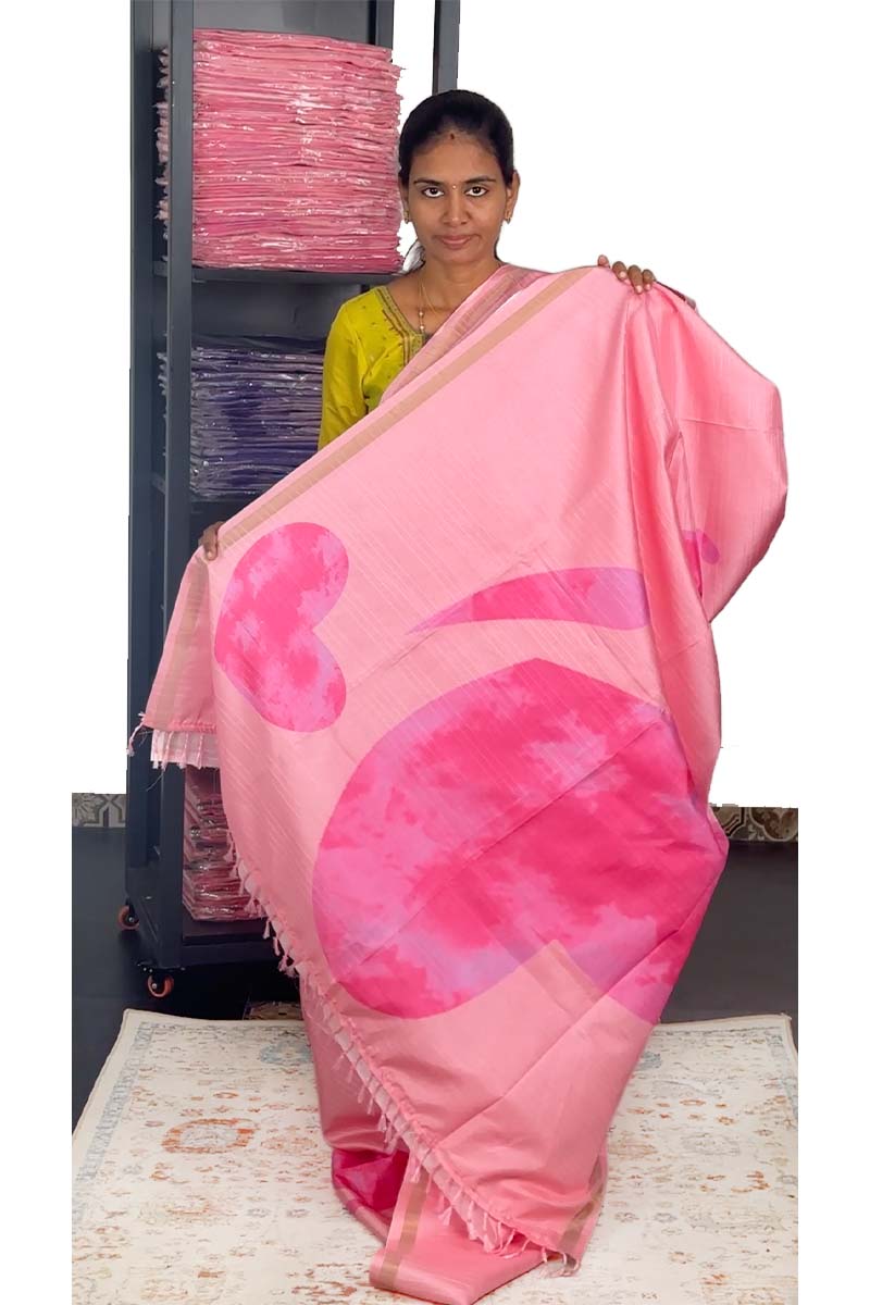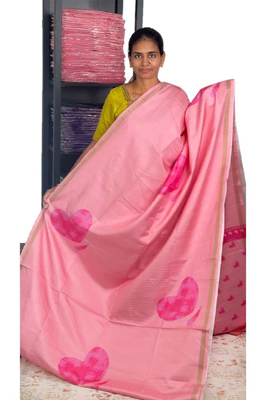 🌟Soft Semi Tussar Silk Saree With Heart Design| Menmai Exclusive 👑 |Blush Pink - Bright Pink
