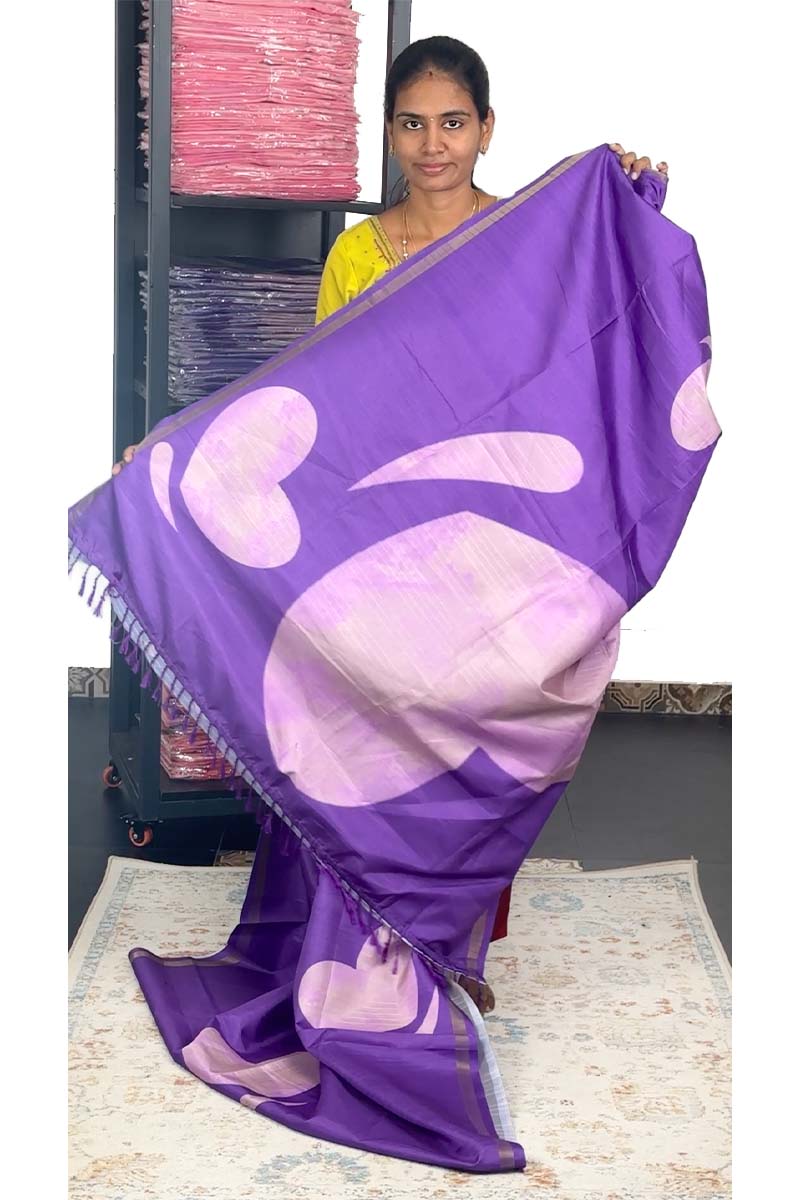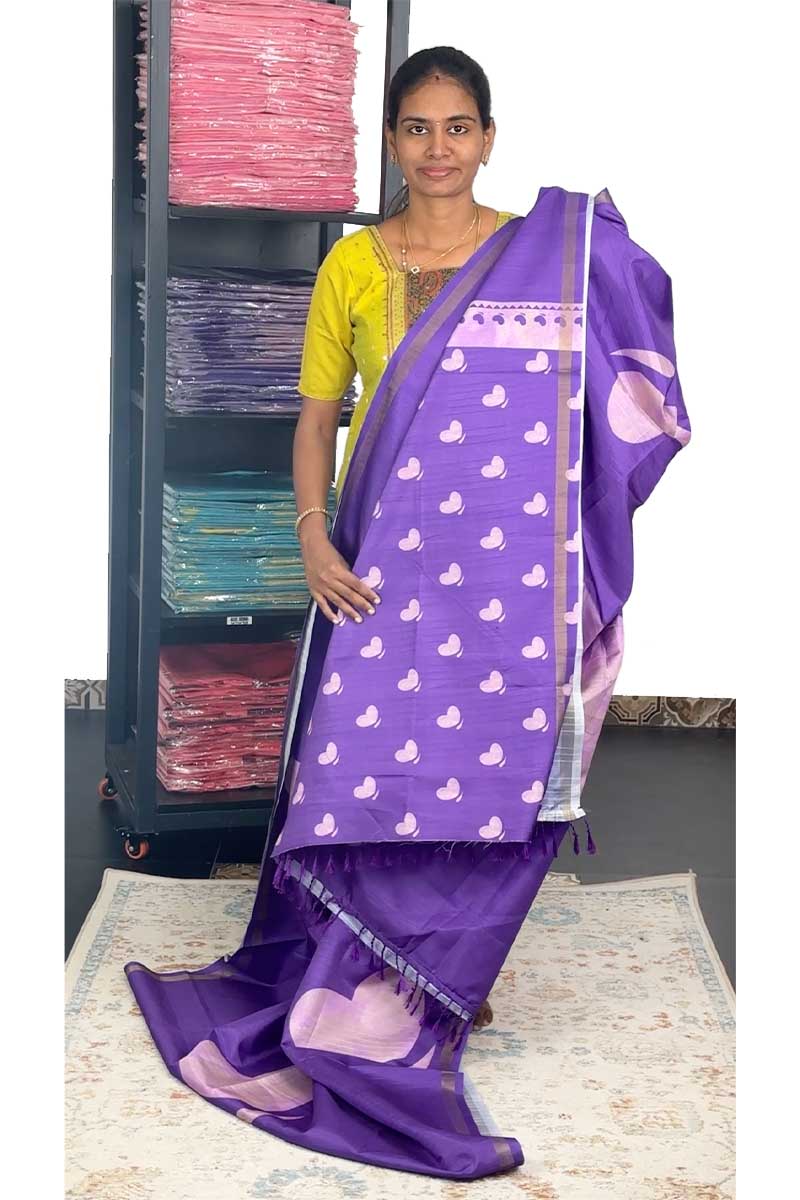 🌟Soft Semi Tussar Silk Saree With Heart Design| Menmai Exclusive 👑|Purple - Pastel Pink