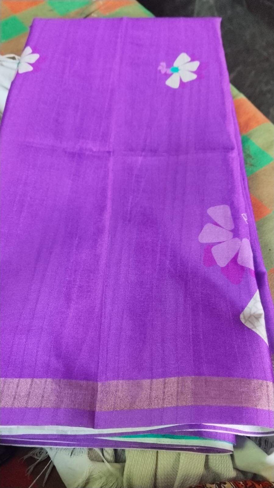 π3D Flower Soft Semi Tussar Silk Saree | Menmai Exclusive π | Lite Eggplant + Teal Blue
