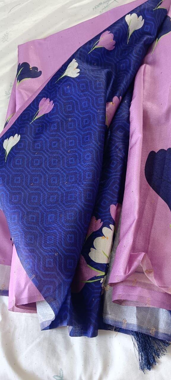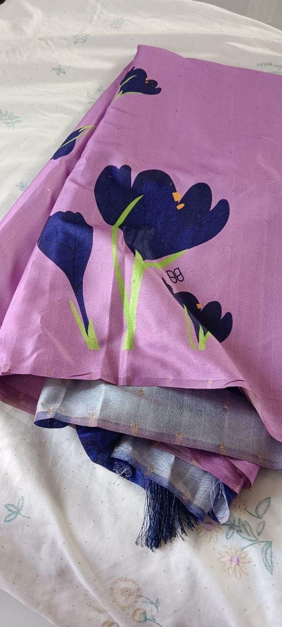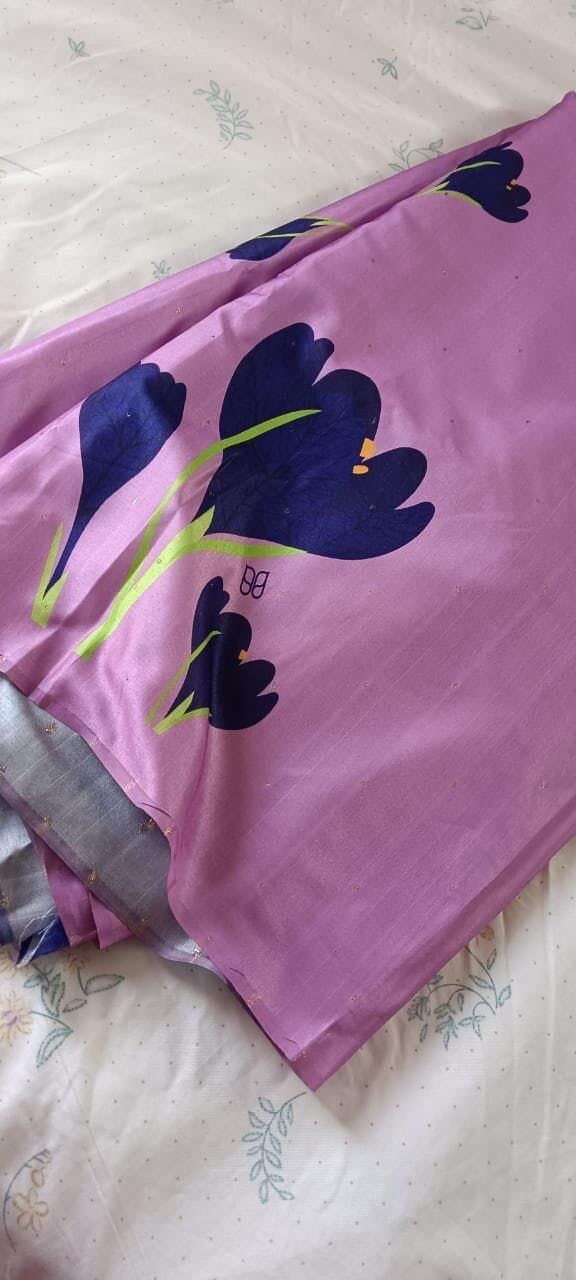 Air Tussar Saree With Flower Motif | Onion Pink+Blueberry