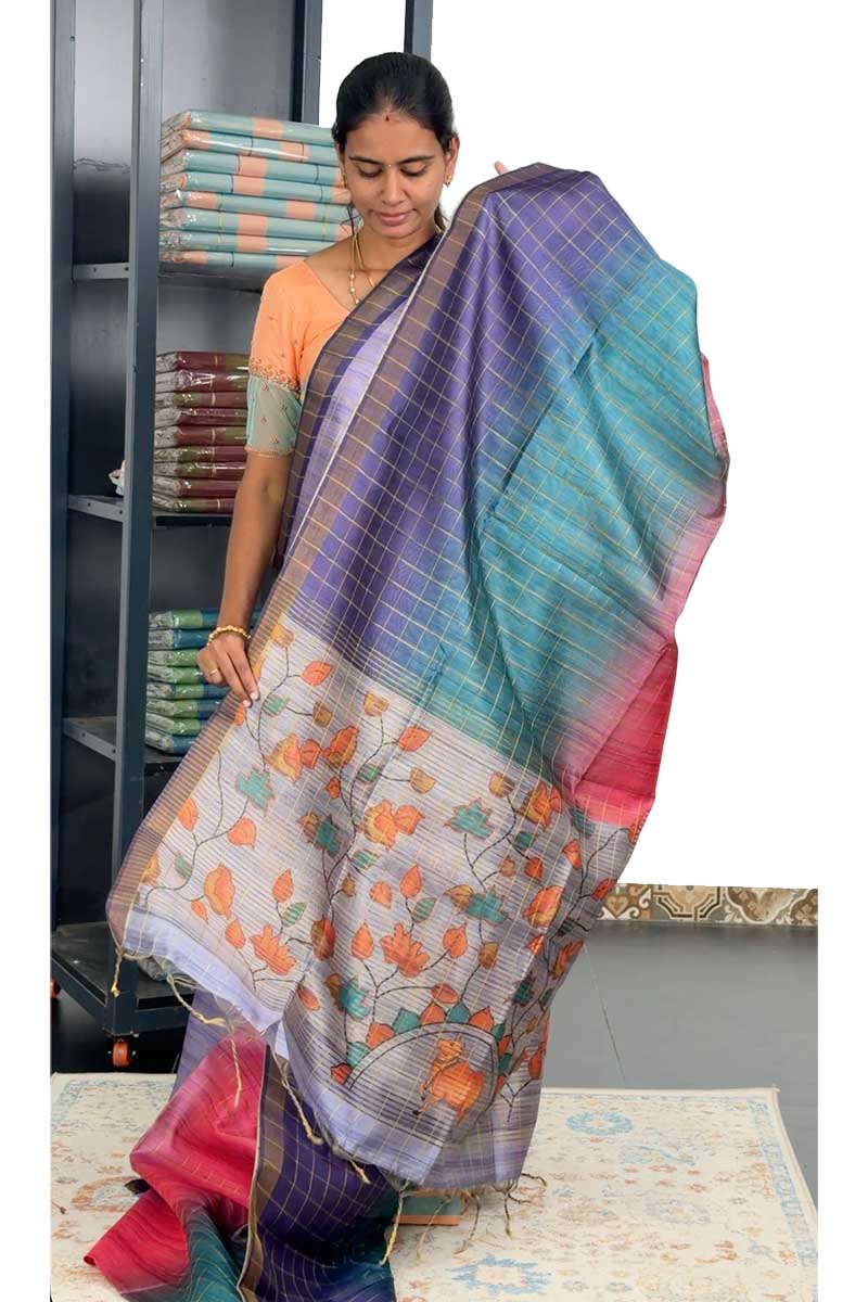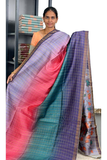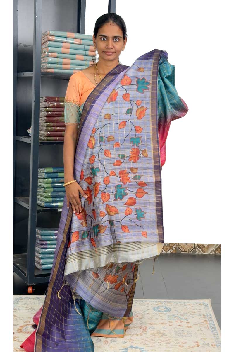 Semi Art Tussar Saree with Multicolor | Lavender + Lilac
