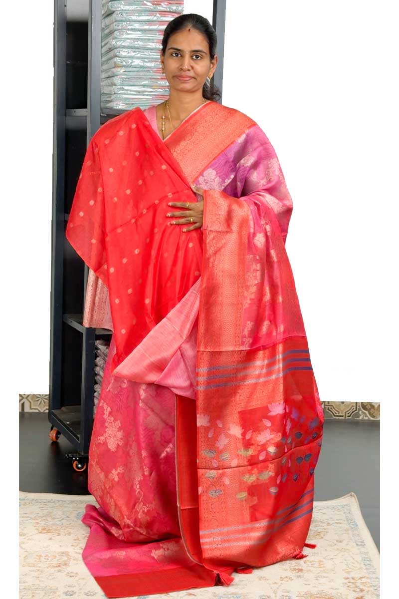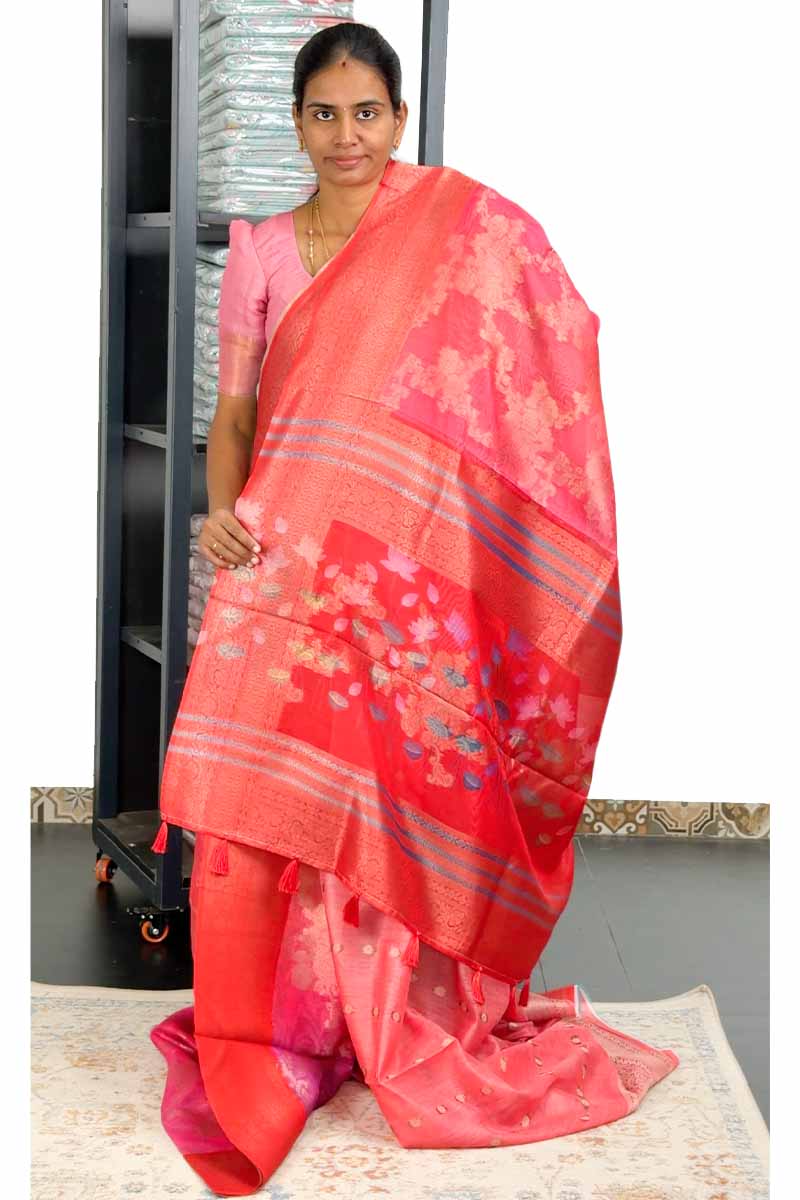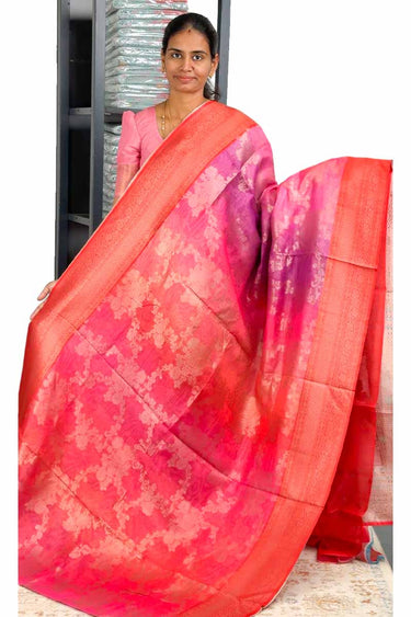 Banarasi Linen Saree in Melting Tones | Gradient Colour With Tango Border | Menmai Exclusive Saree 👑