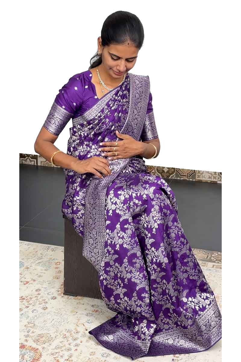 Banarasi Silk Saree With Silver zari | Violet