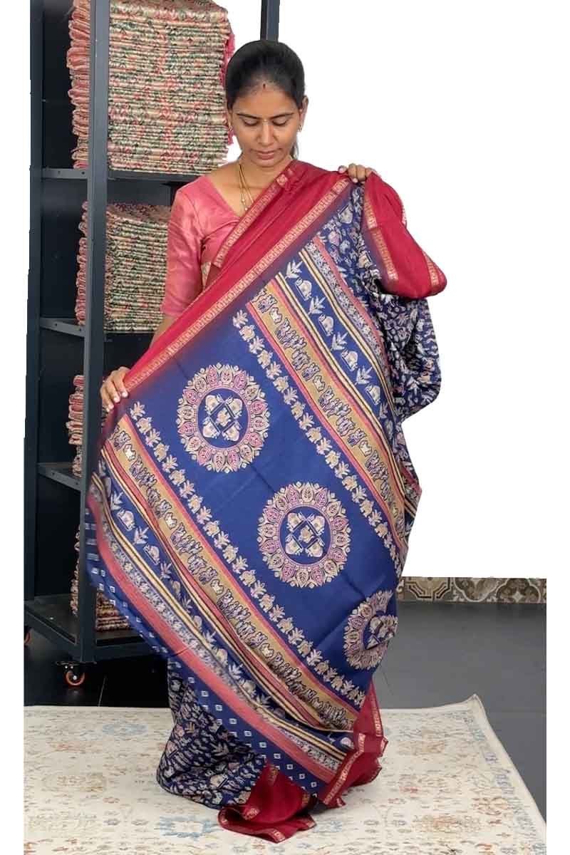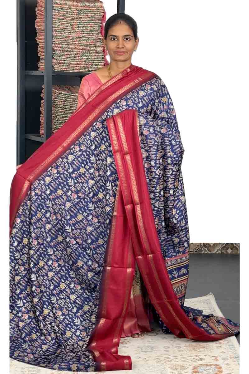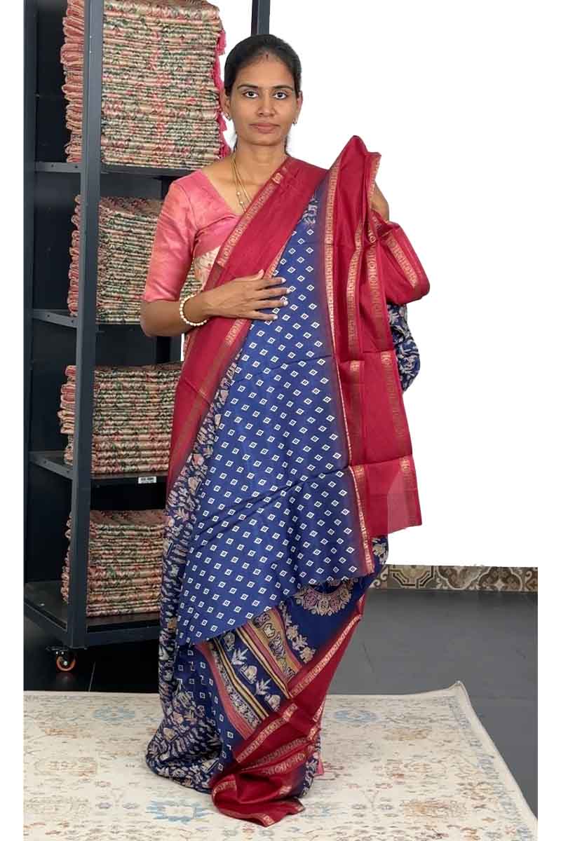 Binny Silk Saree with Retta Petta Border |Blueberry and wine Red