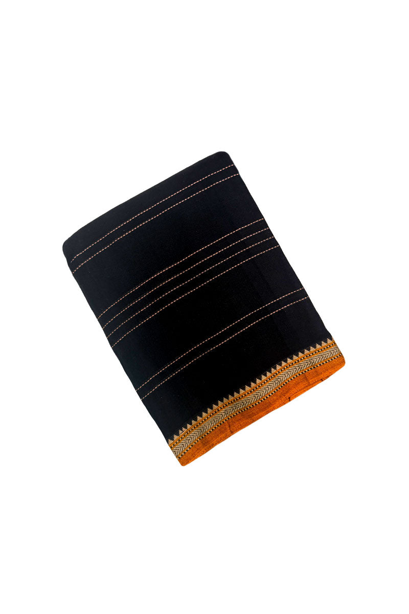 Cotton Saree With Stripes Pattern | Black