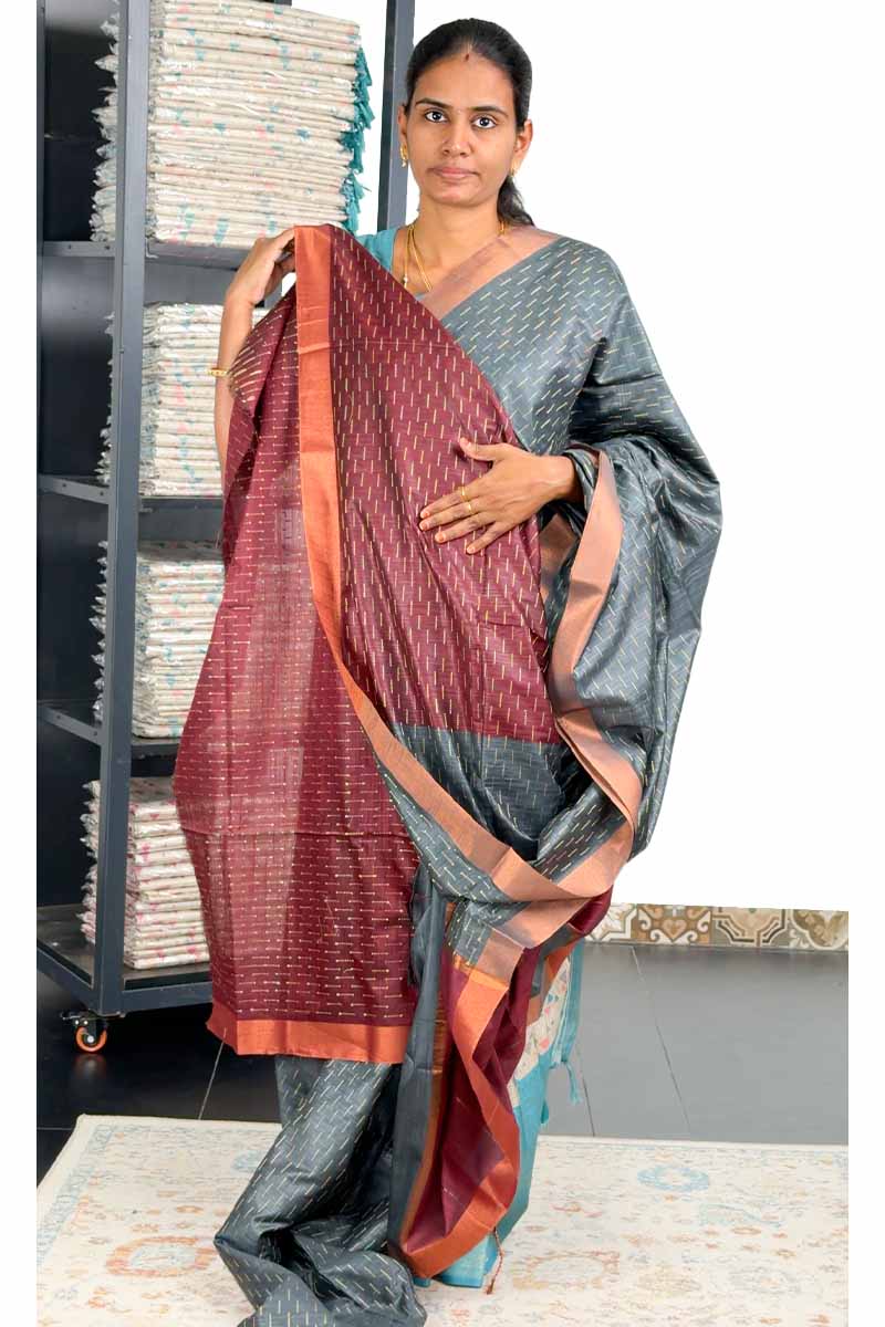 This saree is perfect for festive occasions, intimate gatherings, or daily elegance. Drape it, feel the finesse, and own your unique style with Menmai Fabrics.