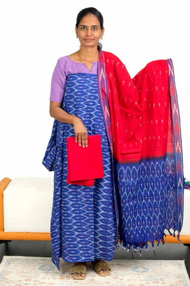 Cotton Salwar Material (Top, Bottom & Dupatta) | Navy Blue + Red