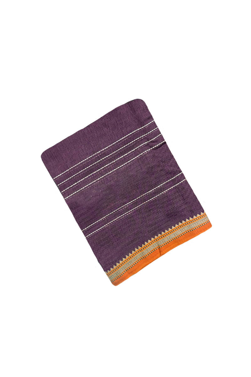 Cotton Saree With Stripes Pattern | Eggplant