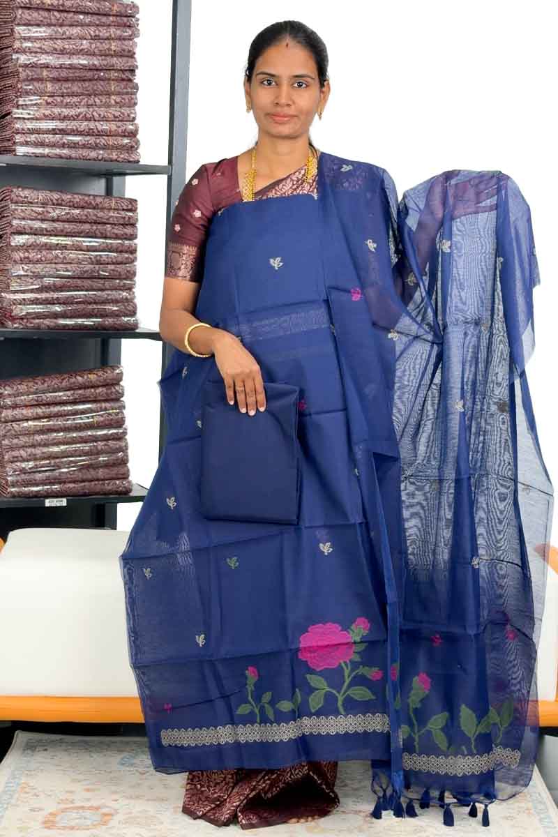 Handwoven Muslin Salwar Material (Top, Bottom & Dupatta) | Blueberry