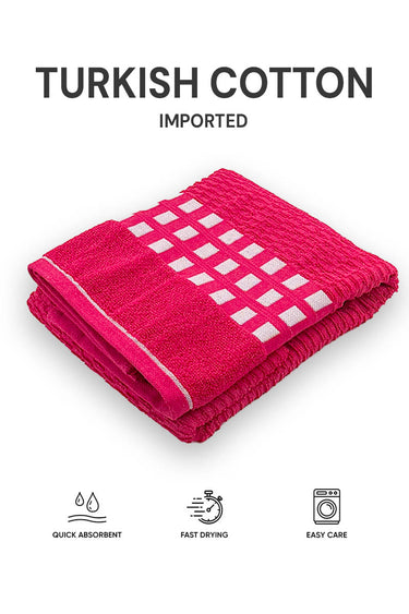 Imported Turkish Cotton Towel | Modern Check Pattern | Rani Pink