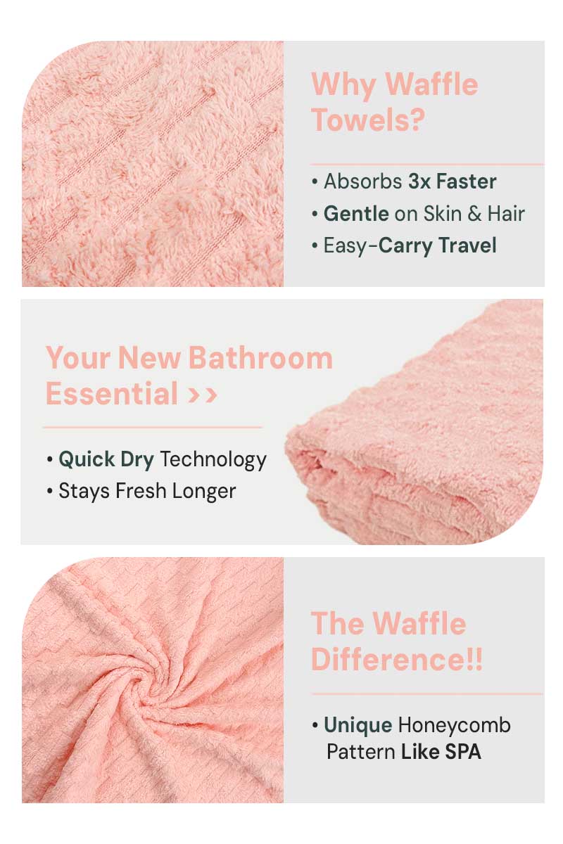 Imported Waffle Microfiber Towel | Honeycomb Pattern | Pale Peach Pink