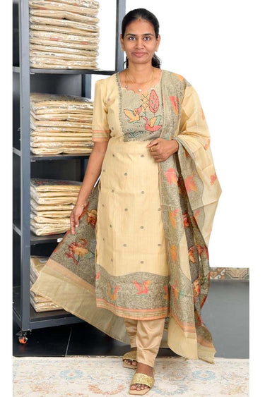 Jamdani Salwar Material (Top, Bottom & Dupatta) | Chickoo