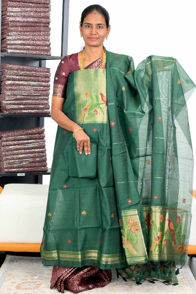 Jamdani Suits Salwar Material (Top, Bottom & Dupatta) | Forest Green