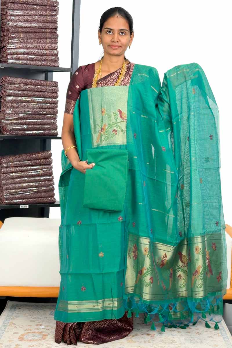 Jamdani Suits Salwar Material (Top, Bottom & Dupatta) | Aqua Mint