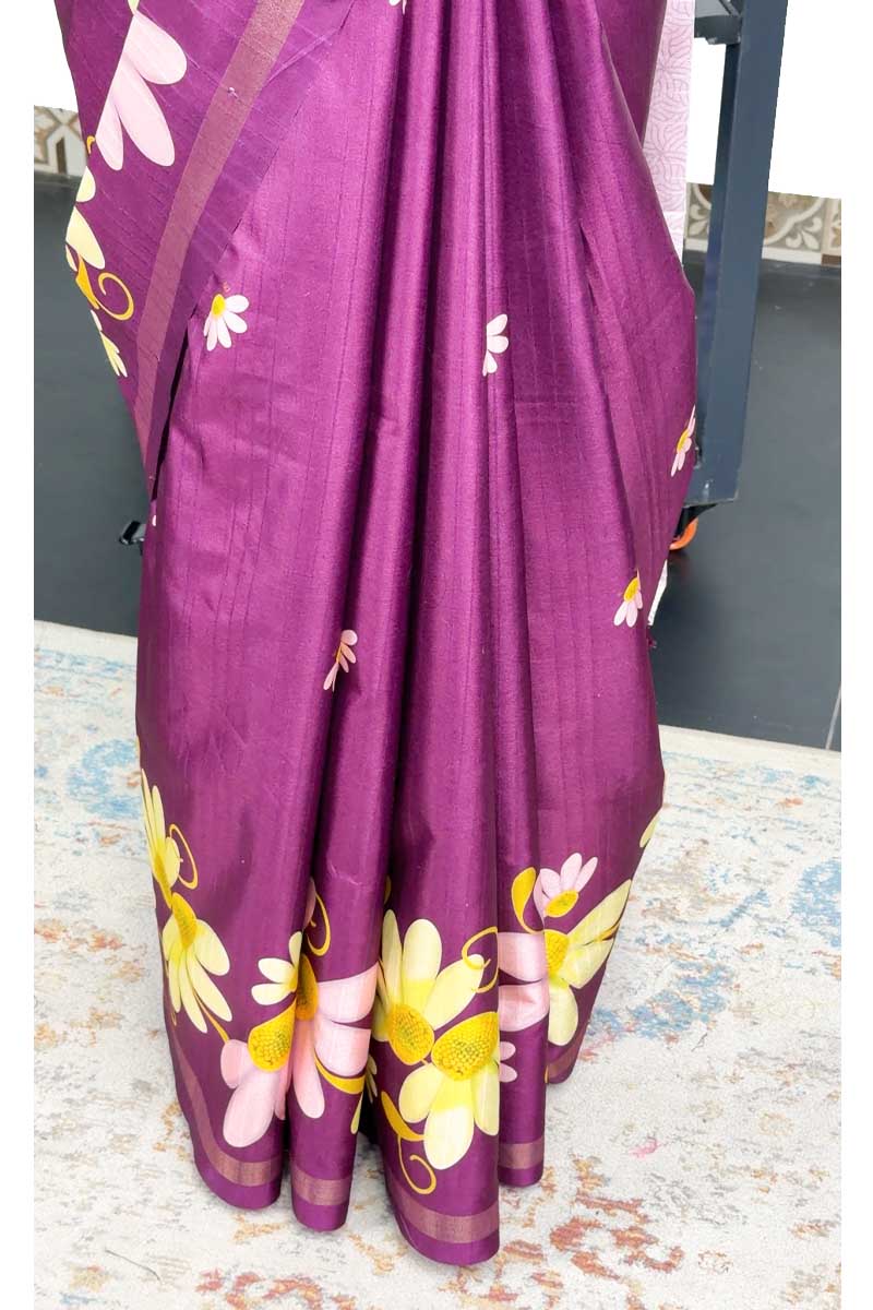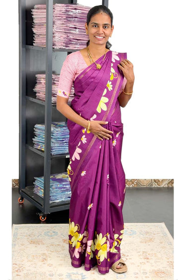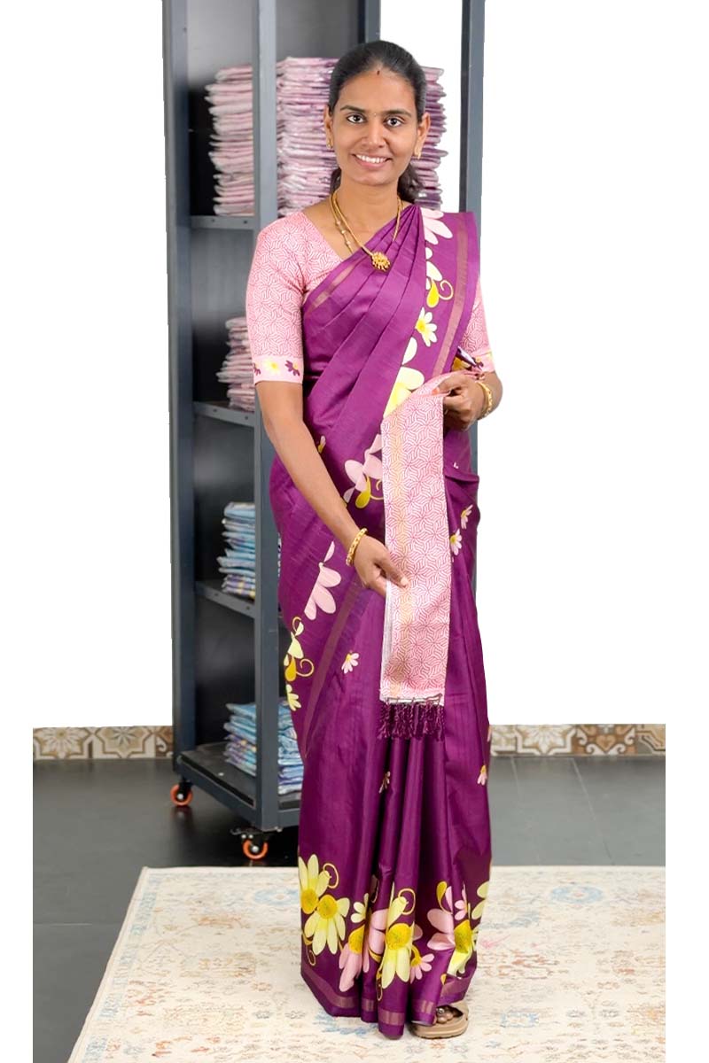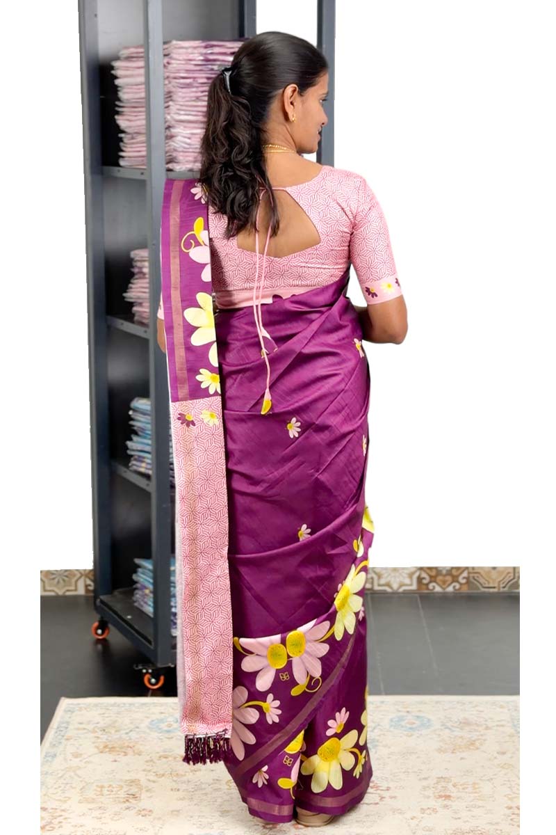 Just Launched โœˆ๏ธ ๐ŸŒŸ Borderless Kodi Design Soft Semi Tussar Silk Saree | Menmai Exclusive ๐Ÿ‘‘ | Mulberry Purple + Baby Pink