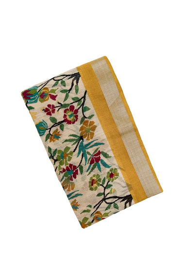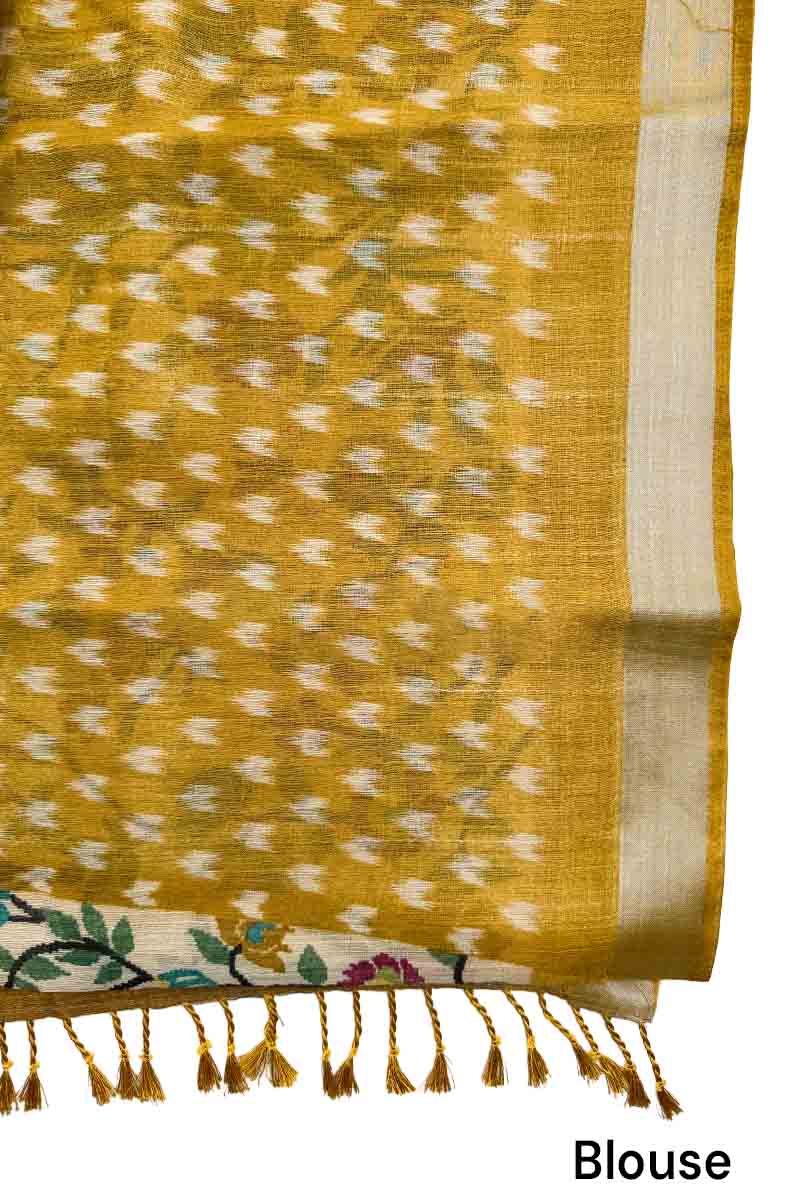 Jute Cotton Saree With Blossom Design | Mustard Yellow