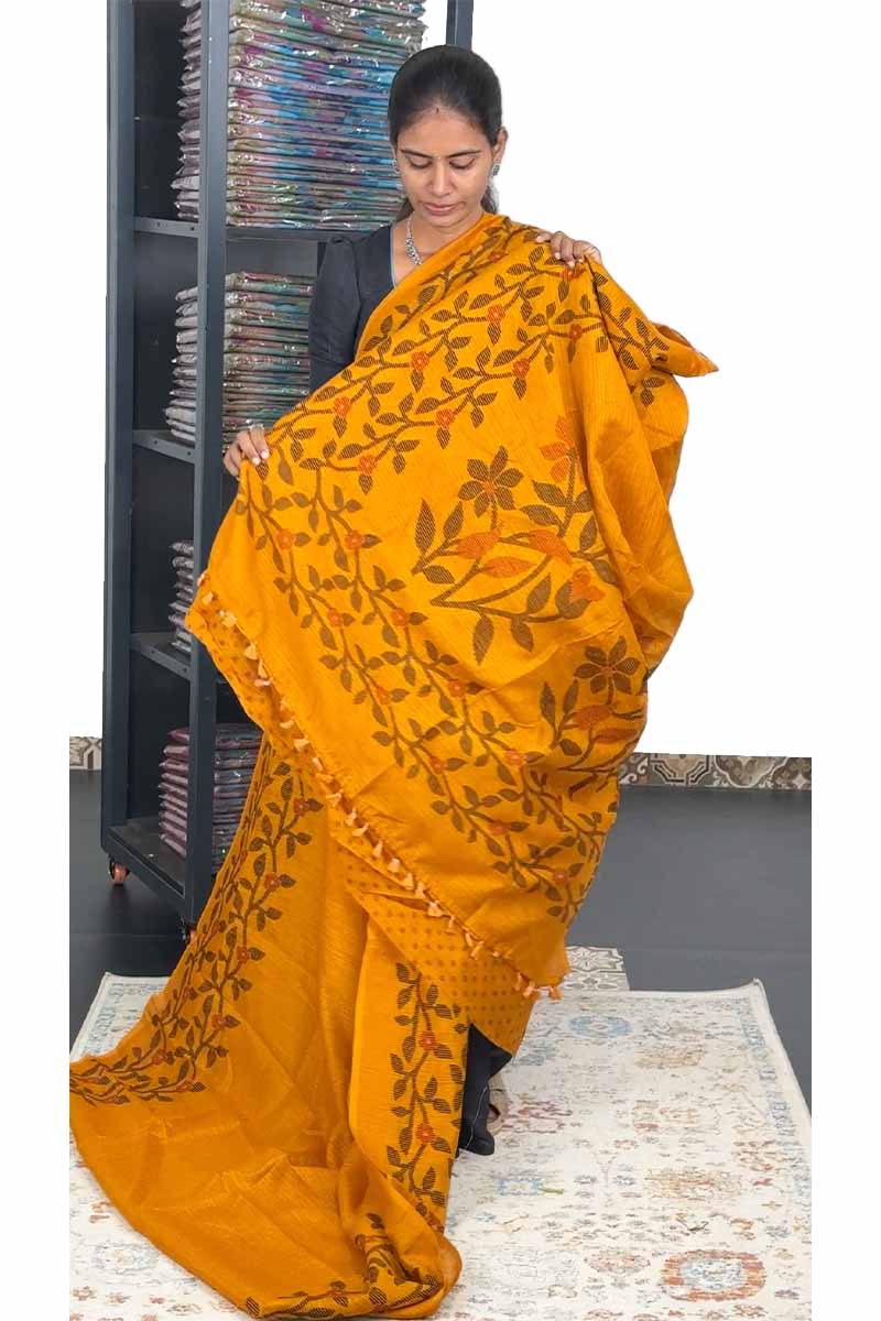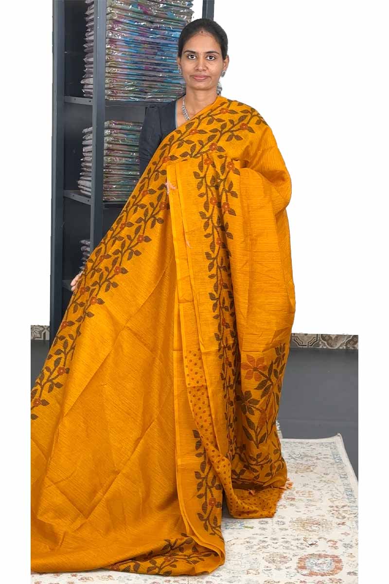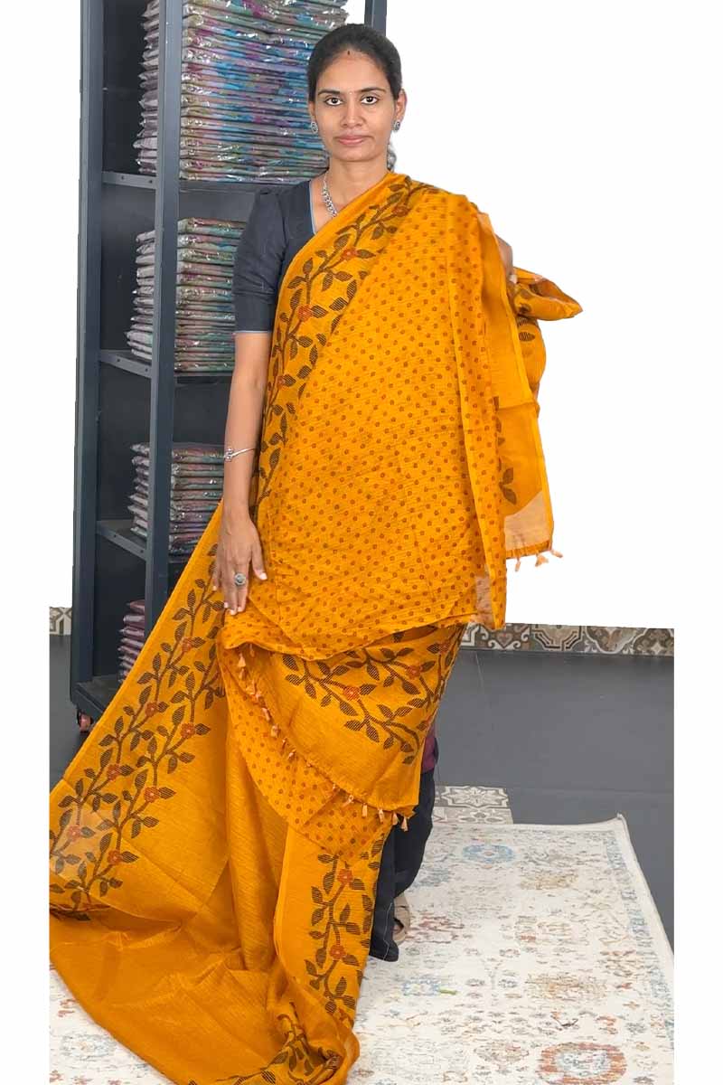 Jute Cotton with Zari Border | Dark Mustard Yellow
