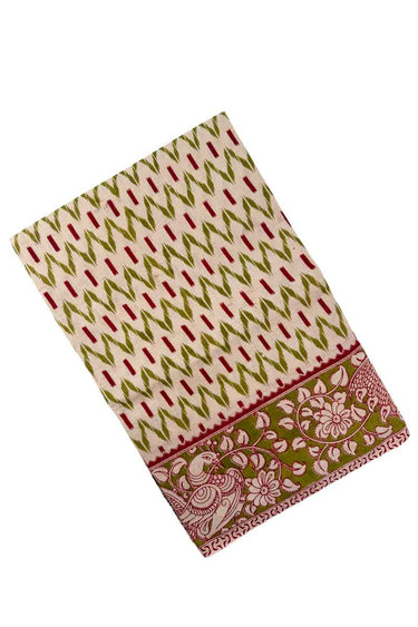 Kalamkari Cotton Saree | Sand + Olive Green