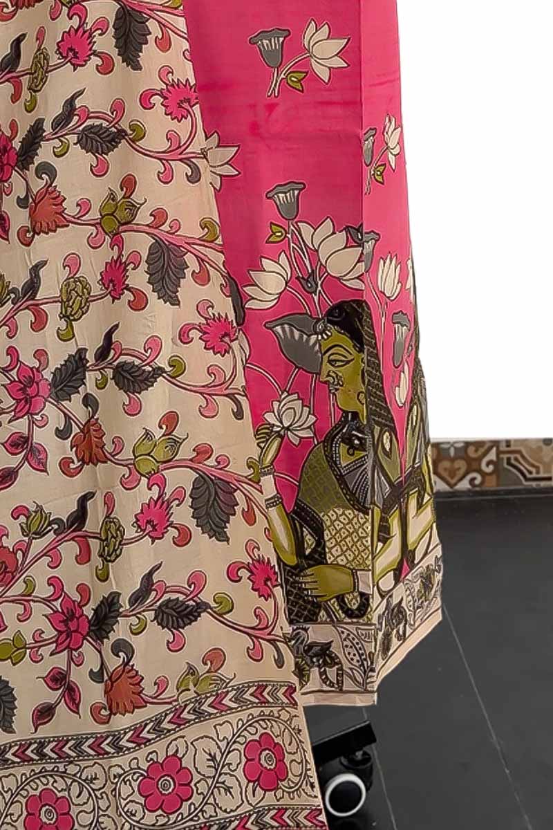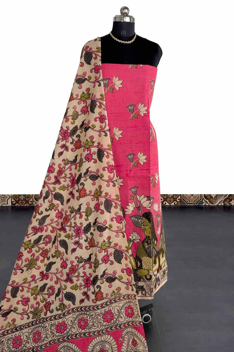 Kalamkari Cotton Salwar Material (Top & Dupatta) | Mustard Yellow + Cream Tan