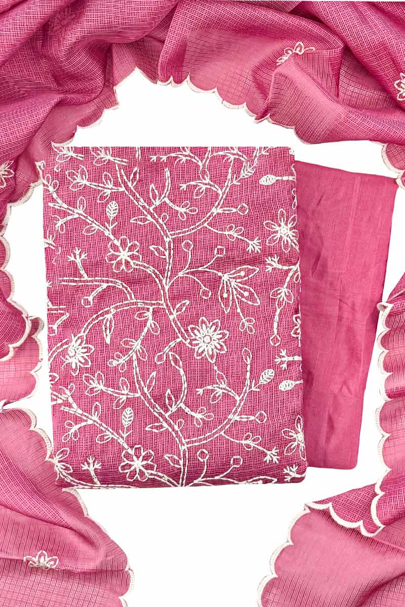Kota Cotton Salwar Material (Top, Bottom & Dupatta) | Rose
