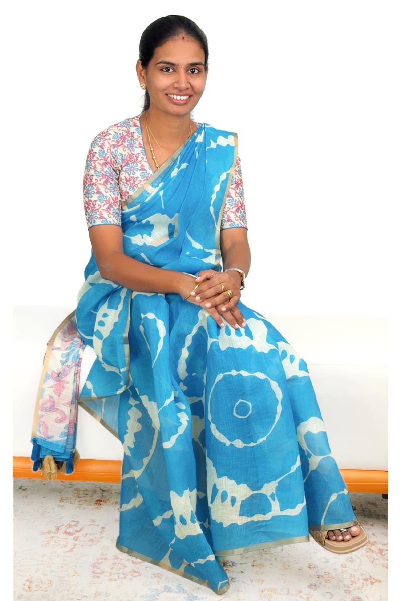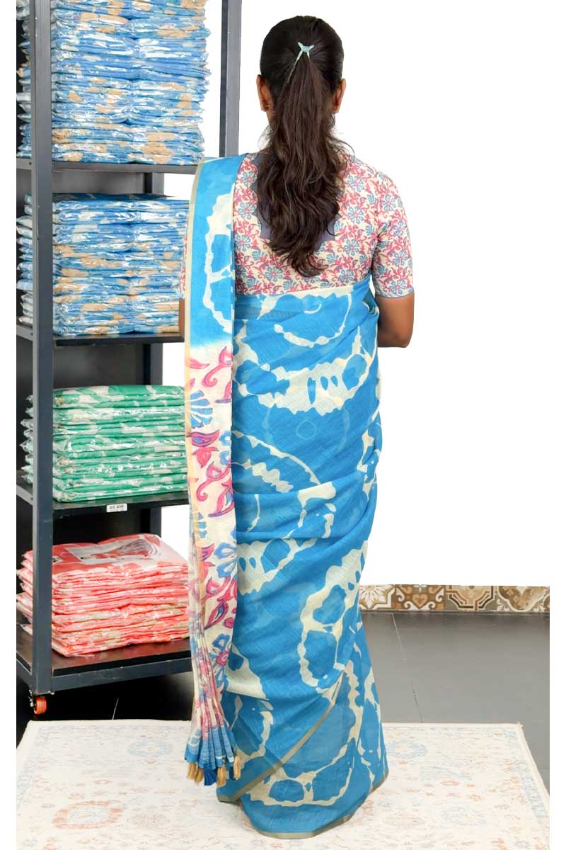 Linen Cotton Saree| Bright Blue