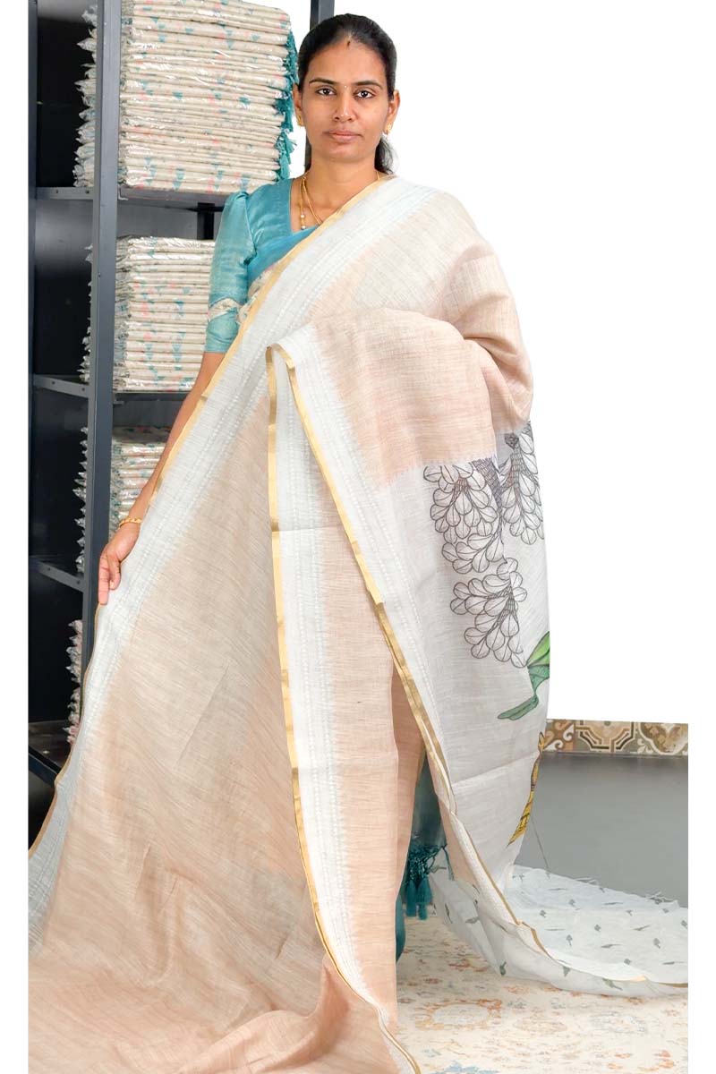 Linen Saree With Pastel Shades | Tan