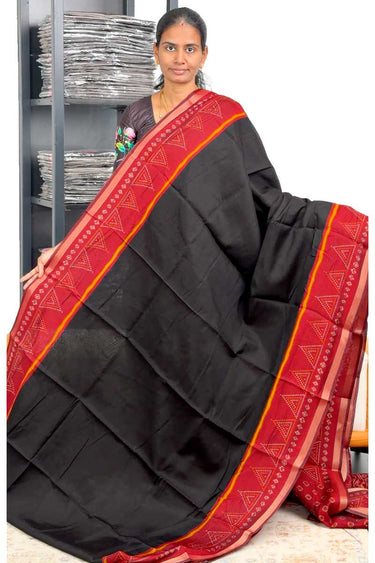 Maheswari Cotton Saree With Triangle Border | Black + Pretty Red