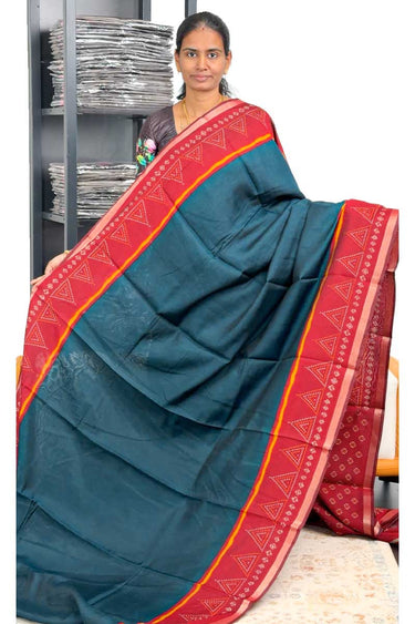 Maheswari Cotton Saree With Triangle Border | Happy Blue + Red